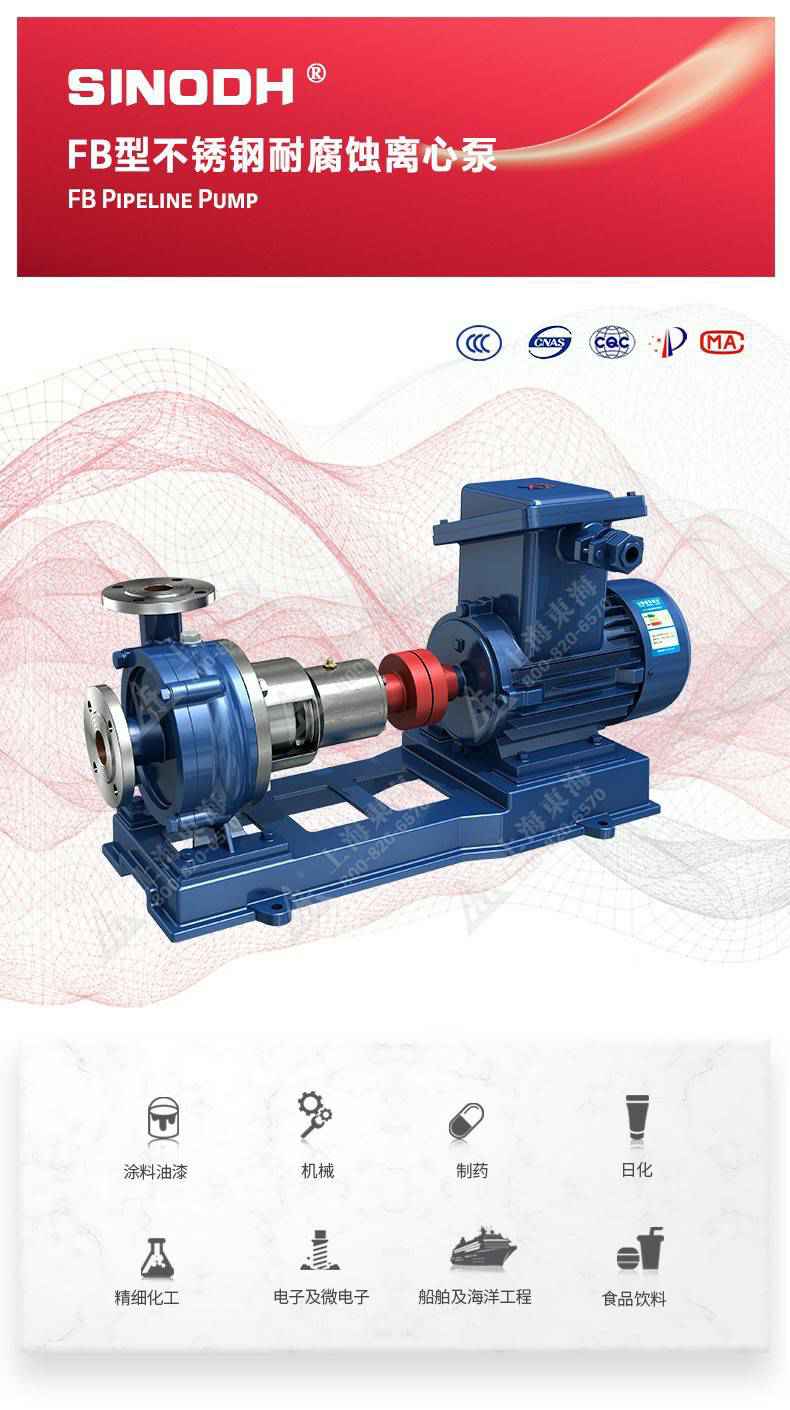 FB型不锈钢单级单吸悬臂式耐腐蚀离心泵,为重庆夏宇文化交流培训有限公司自主研发生产。本系列产品适用于输送不含固体颗粒,有腐蚀性液体。被输送介质温度为-20℃~200℃,泵的进口压力不能大于0.2MPa,广泛用于石油、化工、冶金、合成纤维、制药、食品、酿造等工业部门,也可供工矿、企业及城市供水、排水之用。