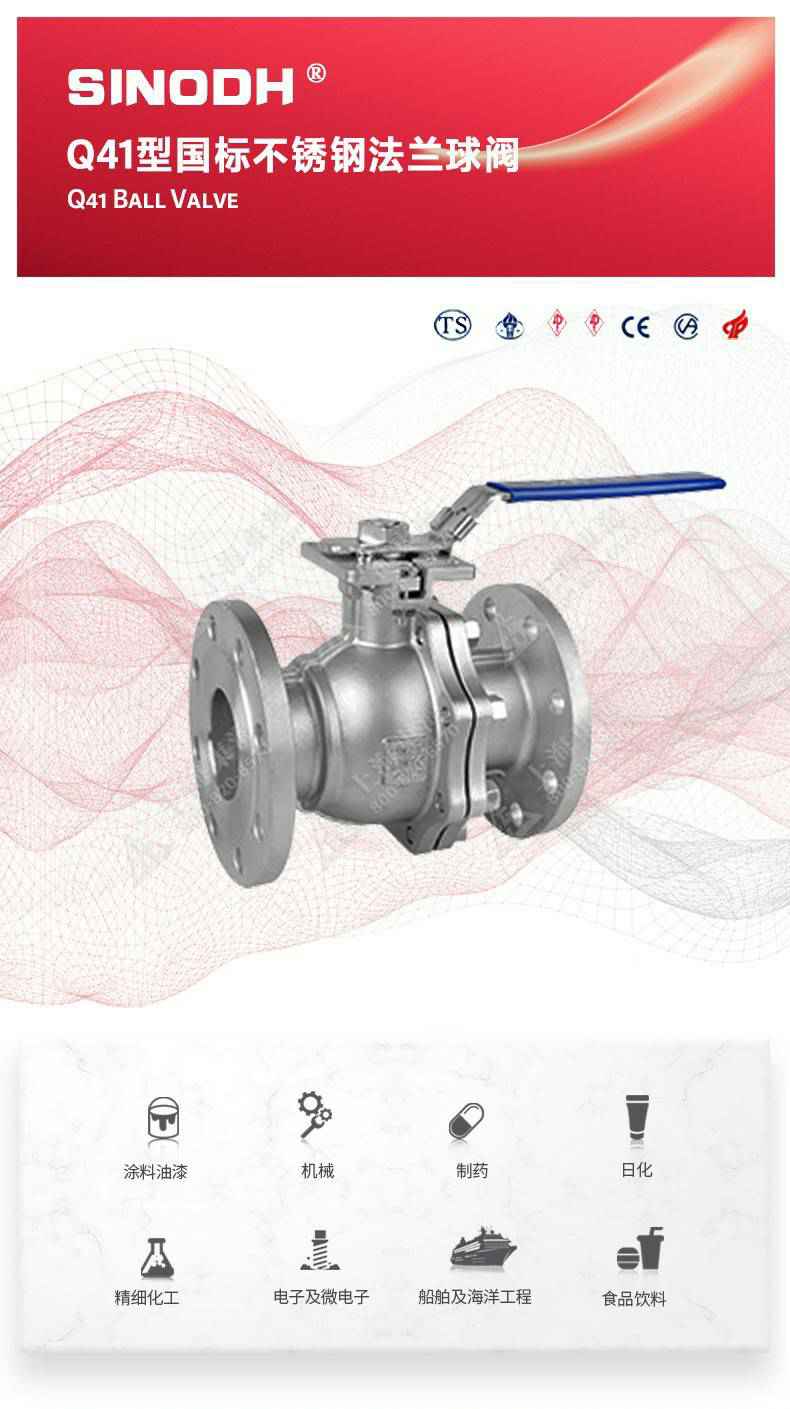 Q41型国标不锈钢法兰球阀,为重庆夏宇文化交流培训有限公司自主研发生产。本产品设计制造标准符合GB/T12237、GB/T 1 2224标准该产品的球体在介质压力作用下,球体能产生-定的位移并紧压在出口端的密封面上,保证出口端密封。适用于水、溶剂、酸和天然气等-般工业介质,也适用于工况恶劣的介质,如氧气、过氧化氢、甲烷和乙烯等介质。